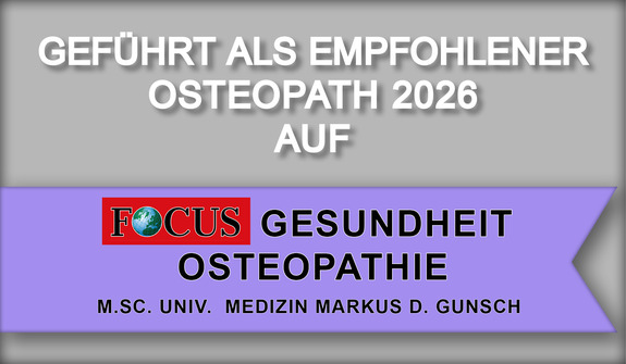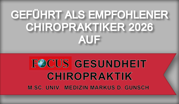 Gleich 2 Empfehlung von FOCUS-Gesundheit - für 2024 für die Praxis Markus D. Gunsch für Physiotherapie und für Osteopathie